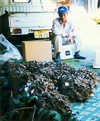 東別院町東掛の石田博美さんの裏山に、今春植え付けた250個の舞茸が収穫期を迎え、見事な傘を広げています。大きいのは1株3700グラムもありズッシリと重く、これらは大阪の市場へ出荷され、高級料亭へと買われていくそうです。