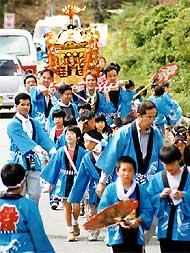 [宮川地区・柴田浩治情報員]![]() 宮川神社秋祭りのみこし巡行 10月8日、宮川神社の秋祭りが営まれました。祭典後、宮司、宮総代さんを先頭に子供みこしが区内を巡行。ハッピ姿のかわいい子供たちが綱を引き、太鼓の響きと「ワッショイ、ワッショイ」の掛け声で、一層お祭りを盛り立てていました。 |