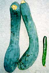[東本梅地区・家垣信行情報員] ながーいカボチャがとれました。長さ約70センチで、食べてもおいしかったです。名前を教えてください。 |