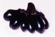 [千代川地区・俣野正明情報員] 9月24日、千代川町北ノ庄の俣野敏之さん宅の菜園で仲睦まじく並んだ6つ子のナスがとれました。端の2個はもう2つに分かれそうで、これも分かれていたら8つ子になっていたでしょう。 |