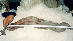 | [千歳地区・広瀬友彦情報員] 千歳町出雲の広瀬喜代次さん宅で長さ55センチ、重さ2キロもある大きなサツマイモがとれました。 |