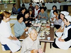 宮川食改員さんの減塩料理試食会が11月3日、同区公民館で開かれました。まず、「よい食生活をすすめるために」ということで、食改推進委員さんの指導のもと、乳製品を使った献立、野菜もたっぷり入った3種類の減塩料理を菊花展に来られたみなさんに試食していただきました。減塩習慣を定着させ、バランスのよい食事をしましょう。