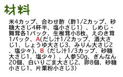 1. ご飯をかために炊く。合わせ酢の調味料を合わせておく。