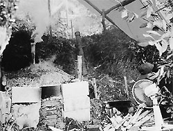 東別院町東掛の八木兵司さんが二月十八日、竹薮を掃除して切った竹を有効に使おうと、家の裏山にドラム缶二本を釜にして竹炭焼きをされました。約二十キロの竹炭と竹酢液ができました。