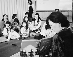 亀岡市子育てネットワーク主催「馬路町子育ての会」が三月十六日、同町生涯学習センターで開かれ、絵本を読んだり、紙芝居をしたりして、お母さんと子供たちとが心を寄せ合い、楽しいひとときを過ごしました。