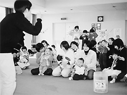 二月二十七日、JA千代川支店二階で保健所並びに子育て推進員、自治会のリードで第三回ちびっこひろば子育て交流会が開かれ、二十五組の親子が参加しました。