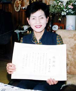 佐々木さんは、議会推せんで亀岡市初の女性農業委員として、大井町の四方美代子さんとともに平成十一年七月に就任。農業委員になって、何か活動を始めなければならないという思いの中、会長の話の中から得たのが全国農業新聞の普及拡大で、これを第一歩の活動として力を注ぎ、まわりの理解を得て購読者が拡大。今回の表彰は、その功績が認められたものです。