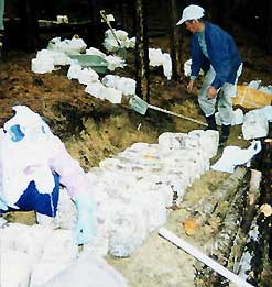 東別院町倉谷の堀井弥さんが四月十三日、近くの山で舞茸の菌床を百五十個植えられました。