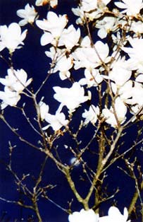 四月中旬、旭町山階の旧家・田中信也さん宅の家敷内の花梨の花が満開になり、白い花を誇っています。