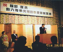 東別院町神原の服部潔さんが勲六等単光旭日章を受章され、その祝賀会が三月十八日、余部町のガレリアかめおかで開かれました。