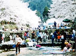 四月八日日曜日は、今年最高の桜花見の日ではなかったかと思われるほど、千歳町七谷川桜並木の下では、大勢の人々がお弁当やバーベキュー等で花見を楽しんでおられました。