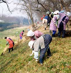 千歳町江島里区のみなさんによって三月二十日、七谷川堤防の清掃が行われました。毎年、桜の花が咲く前に実施されています。