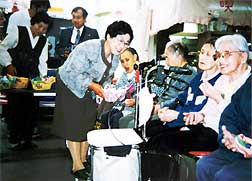馬路町池尻「あやめ会」のみなさんが五月七日、河原林町の特別養護老人ホーム「亀岡園」を訪ね、手作りのお手玉をプレゼントされました。