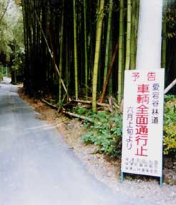 この六月初めから、保津町自治会と森林組合は「愛宕谷林道」神明峠から保津町一の瀬の市道境界線までを車両通行止めにすることになりました。