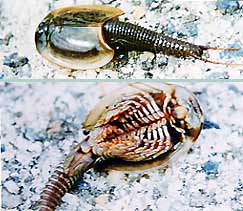 この小生物、約3センチで3億年前から形態の変化もなく、「生きている化石」と言われるそうで、田植え後の早苗時期のみに生存して雑草の繁茂を抑え、苗の生長を助けて「草取り虫」との別名で、多く出る年は豊作とか……。