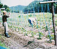 東別院町南掛の岡本正さんが6月17日、京の伝統野菜・万願寺とうがらし250本に支柱をされました。
