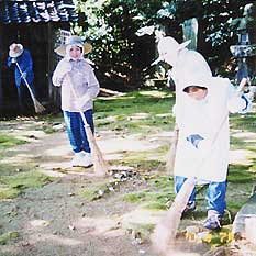 天皇社清掃に汗