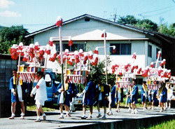 氏子町内を巡行する灯籠行列の一行