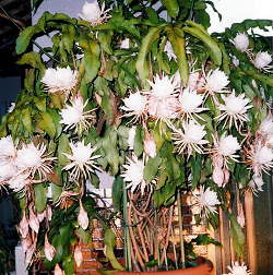 8月9日、「月下美人が昨日は百輪ほど咲き、今夜も咲き始める」との事で、千代川町北ノ庄の俣野昌治さん宅へお伺いしました。