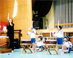 オープニングの太鼓演奏をする園児