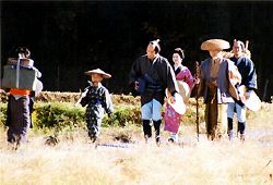 猪倉地区では養源寺付近で、宮川地区では電線のない舗装されていない農道で、水戸黄門の主役・石坂浩二さんと由美かおるさんらが来られ撮影が行われていました。