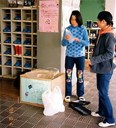 この回収は、学校の授業で色々学習していく中、ゴミが多く、特にダイオキシン発生のもとであるペットボトルを何とかしなくてはと、児童の手で回収が始められました。ふたを取り水洗いし、近所の児童に託すれば学校に持って行ってもらえるという仕組みです。