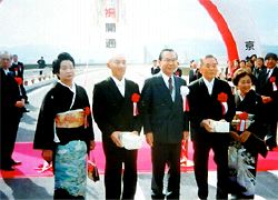 11月19日、待望の新保津橋が開通しました。午前10時から余部町のガレリアかめおかで、荒巻知事らが出席して竣工式が行われた後、11時からは新保津橋で開通式が行われました。