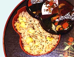 洗った米に濃口醤油、 酒を加えて炊く。 | ||