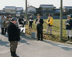 JA亀岡市の「良質麦生産現地技術研修会」が1月11日、河原林町勝林島集団転作団地ほ場で開かれました。