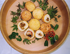 - B・Cに小麦粉、卵、パン粉をまぶし油で色よく揚げる。
