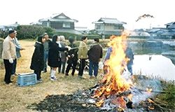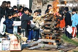 | [宮川地区・柴田浩治情報員] 1月15日、毎年恒例のとんどが各地区で行われました。神社または隣近所の人でしめ縄や門松を持ち寄り、広場で昔ながらのとんど焼きをして、今年1年の無病息災を祈りました。 |