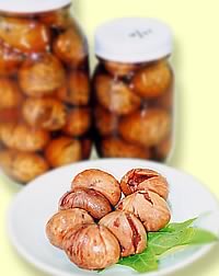 栗をビンに詰め、5を入れて脱気三十分(フタを少しゆるめて)、殺菌四十分(フタをしっかりと)行う。 |