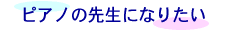 私の将来の夢は、ピアノの先生になることです。小さいころから習っていて、ピアノをひいているときは楽しいので、大人になったら子供たちに教えてあげたいです。そのためには、もっと練習して上手になりたいです。